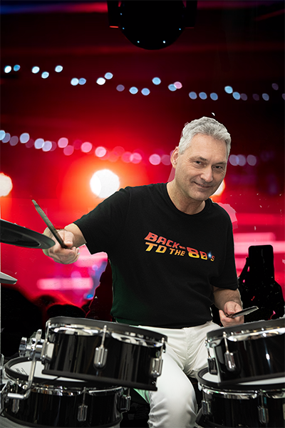 Der Bandgründer von „Back To The 80s“ legt mit den tiefen Tönen zusammen mit dem Schlagzeug die Grundlage für den richtigen Groove in der Band. Schon in den frühen Teenagerjahren entdeckte er seine Leidenschaft für den Bass – inspiriert von den legendären 70er und 80er-Jahren. So steht er seit über 50 Jahren auf der Bühne, spielte in verschiedenen Rock-, Funk-, Soul- und Pop-Formationen. Zitat: „Der Bass ist das Herz der 80er – ohne Groove kein Dancefloor, ohne Tiefe kein Gefühl.“